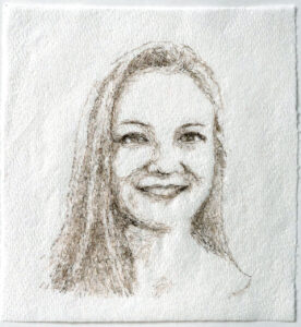 These drawings are part of an ongoing series of self-portraits drawn from my eyebrow hairs collected over 2.5 to 3 year time periods. Collection for the first drawing in this series started in 2005. I continue to collect for my next drawing still today. In part, this project is documentation of the dedication and obsessive habits associated with the common cosmetic routine of plucking eyebrows. It is also about time and the effects of aging. i am testing my personal drive and dedication while exploring concepts of private vs. public, beautiful vs. grotesque, and control vs. the uncontrollable in relation to self-perception.